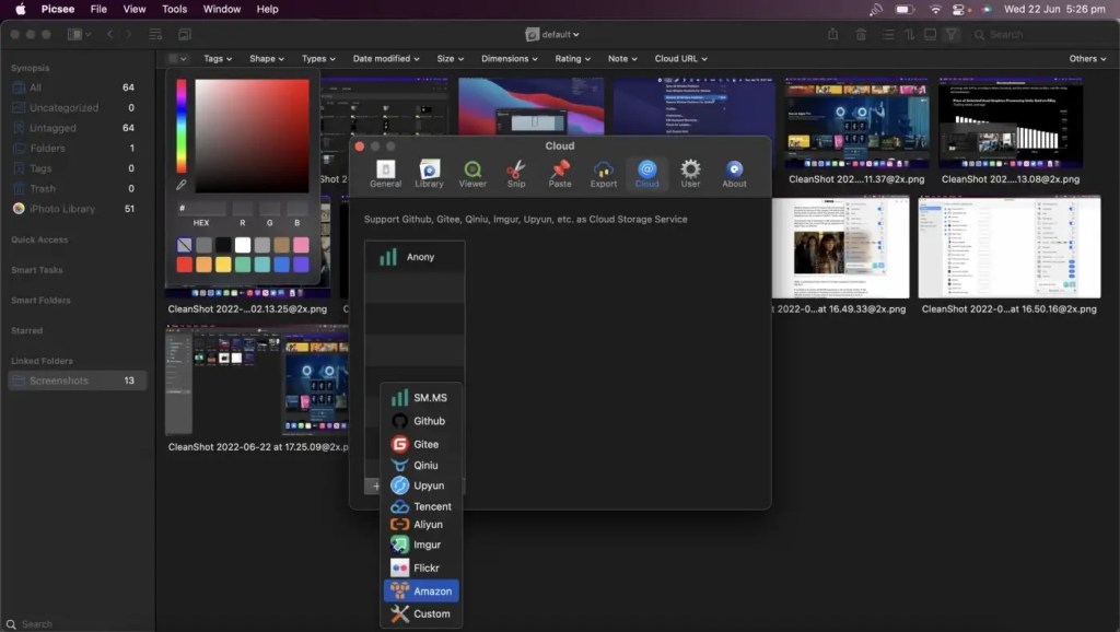 Il existe quelques autres fonctionnalités utiles, comme l’option de connexion à des services de cloud computing comme Github et Imgur, la prise en charge de plugins de navigateur pour enregistrer des images à partir du Web, et des dossiers intelligents pour organiser les photos en fonction de la couleur, du type, de la taille, etc.