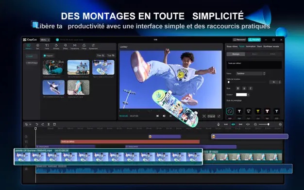 CAPCUT propose des fonctions de montage vidéo faciles à utiliser, des polices et des effets intégrés gratuits, des fonctions avancées gratuites comme l’animation d’images clés, le ralenti fluide et la stabilisation, pour t’aider à capturer et à couper tes vidéos comme tu le souhaites.