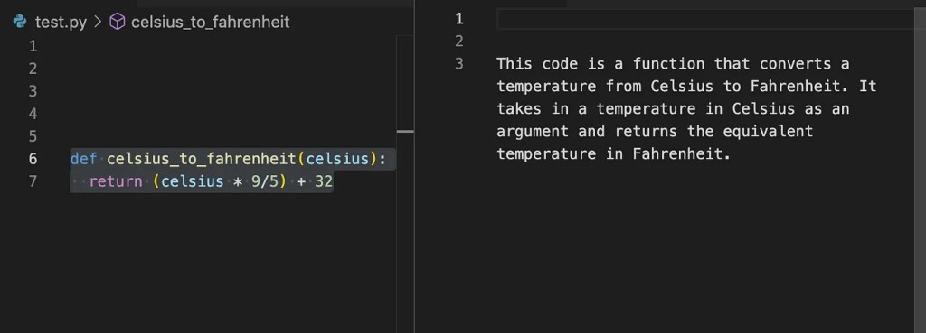 CodeGPT peut produire du code, expliquer du code, poser des questions, refactoriser du code, documenter du code et identifier des problèmes dans votre code grâce à cet addon VSCode. Il suffit d’entrer un commentaire et d’appuyer sur cmd-shift-i pour produire du code.