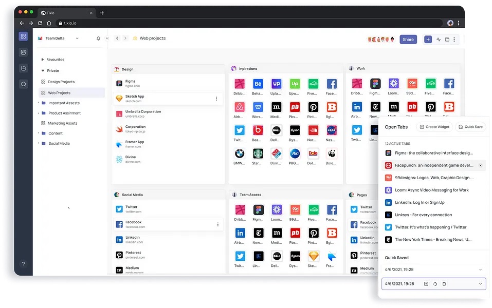 Gérez un nombre illimité de signets, de notes, de tâches et d’informations sur le tableau TIXIO. Organisez des milliers de liens sans désordre, transformez les onglets ouverts en collections de signets créatifs en quelques secondes.