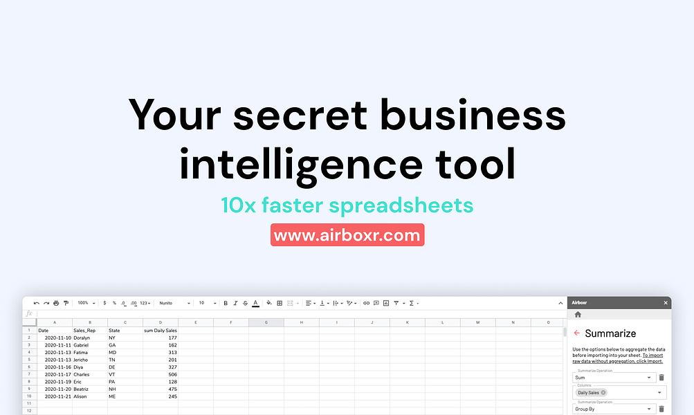 📌 AIRBOXR est un outil NoCode qui permet d’analyser toutes les données marketing en un seul clic. AIRBOXR fonctionne avec Google Sheets et vous permet d’économiser des heures de collecte et de nettoyage de données chaque semaine !