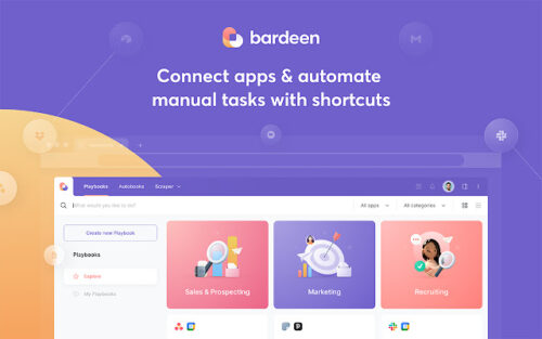 📌 BARDEEN est une extension qui ajoute des raccourcis pour effectuer diverses actions lors de la navigation sur le Web afin de vous aider à automatiser votre travail manuel et vous faire gagner du temps, afin que vous puissiez vous concentrer sur ce que vous aimez. Elle prend en charge les applications de messagerie, de gestion de projet et de messagerie les plus populaires.